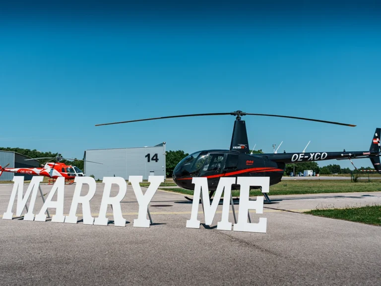 Überraschen Sie Ihr Herzblatt mit einem unvergesslichen Helikopterflug! Ob Valentinstag, Verlobung mit liebevoll gestaltetem Set-up oder ein stilvoller Hochzeitsflug – unsere Romantikflüge kombinieren Emotion, Exklusivität und Gänsehautmomente. Perfekt inszeniert für den schönsten Augenblick.